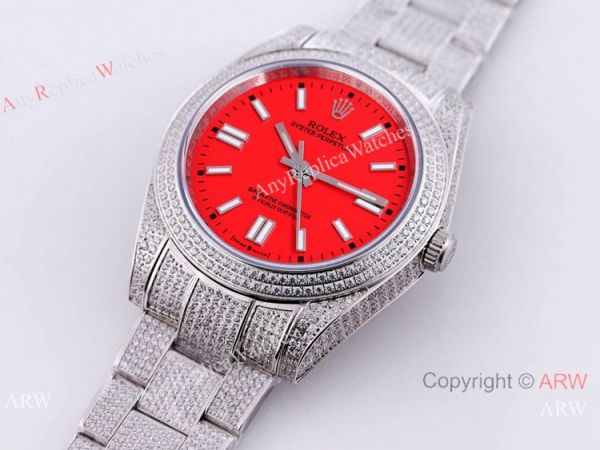 Swiss Quality Replica Rolex Oyster Perpetual 41mm Iced Out Full Diamond Watch. Everything is detailed. Buy now and 100% satisfaction guaranteed. You will receive the same watch as shown in picture. Iced Out Rolex Oyster Perpetual 41, best quality offered, you won't find a better way than this.