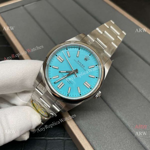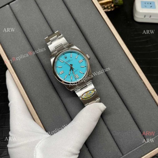 Clean Factory 1:1 Super Clone Rolex Oyster Perpetual Turquoise blue 904L Steel Wrist.