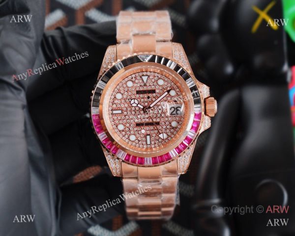 Swiss Quality Rolex GMT-Master ii 40 Pave Diamond Rose Gold Case