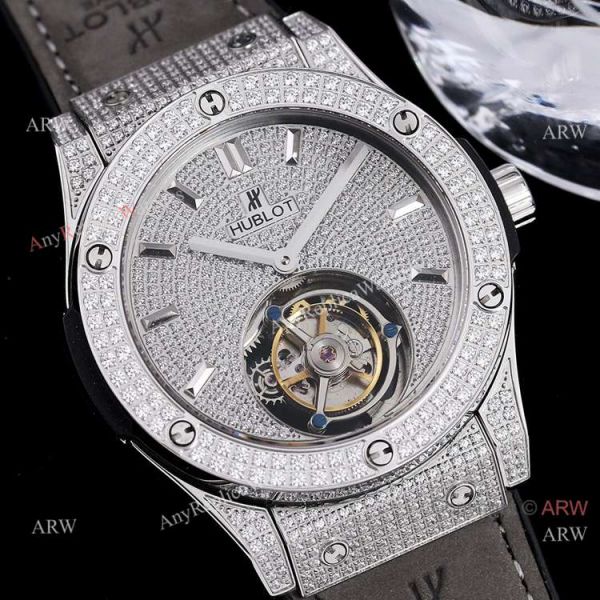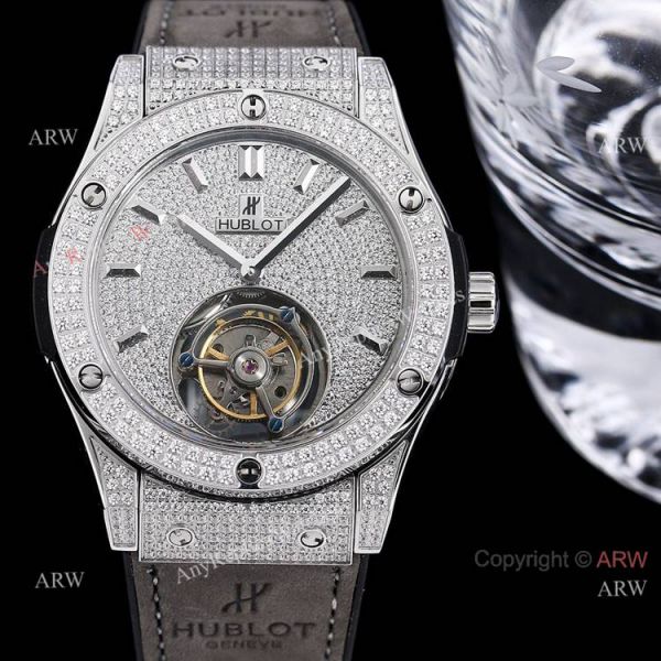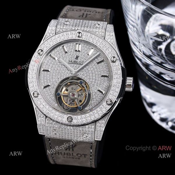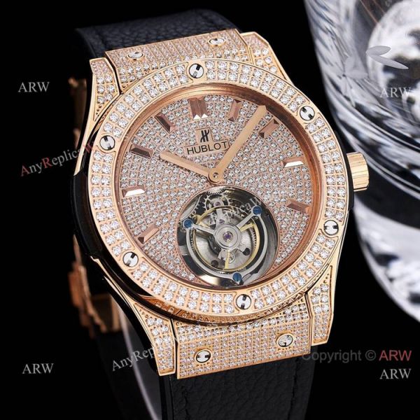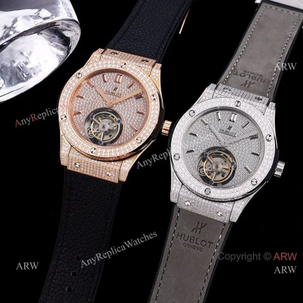 Swiss Grade 1 Replica Diamond Hublot Classic Fusion Tourbillon Black Dial Watches, Best Imitation Watches from China.
