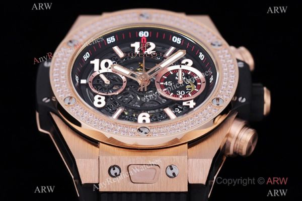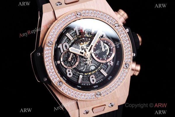 Swiss Grade 1 Copy Hublot Unico King 7750 Watch Rose Gold Diamond Bezel 45.5mm