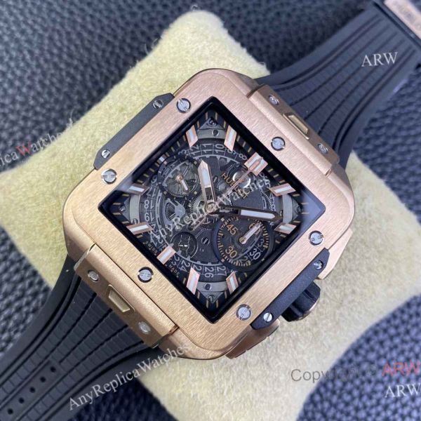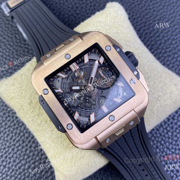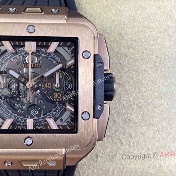 BSwiss Grade 1 Replica Hublot Square Bang Unico Rose Gold Case Black Strap