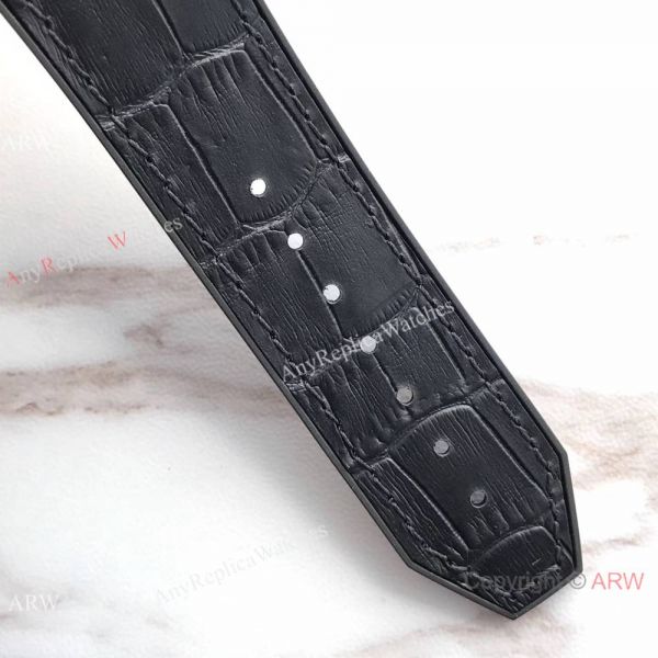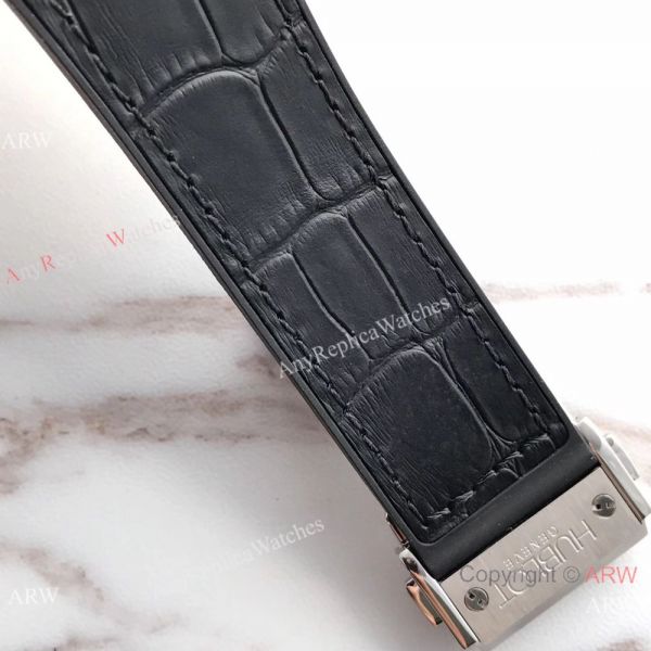 Watch band: Swiss Quality detail finished Black Gummy Strap with Hublot Stamped Markings on Strap and Clasp
