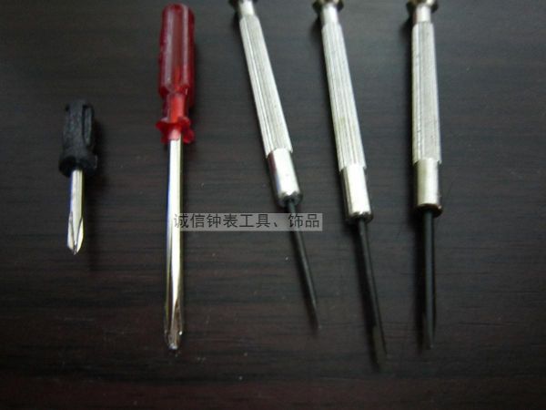 This set of 16 watch repair tools includes: 1 watchband link pin remover, 1 watchband holder, one spring bar remover, 3 Pin punches, 1 metal and plastic hammer, 1 case knife, 3 slotted screwdrivers, 2 Phillips screwdrivers, 1 case wrench, 1 pair of long nose pliers with side cutters, and 1 pair of stainless steel tweezers.
