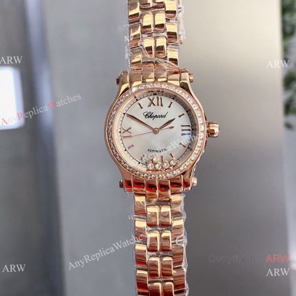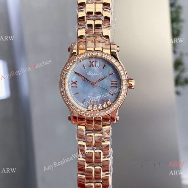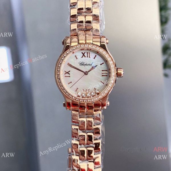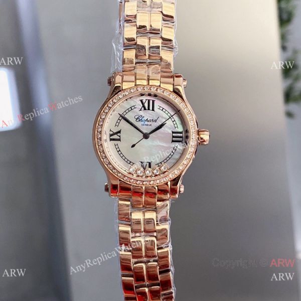 316L Stainless Steel coated Rose Gold watch Case - Pink Mop Dial - Diamond Bezel Replica Chopard Watch