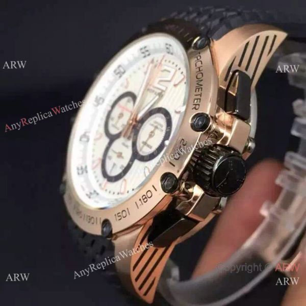 Replica Chopard Classic Racing Watch SS White Chronograph Black Rubber Bracelet