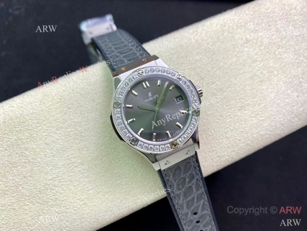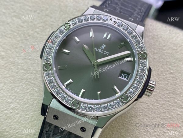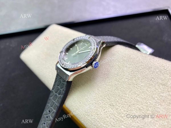 HB Factory Hublot Classic Fusion 33mm Women Diamond Bezel Rhonda Quartz Watch-Knock off Hublot Watches