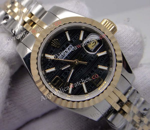 Fake Rolex Datejust Watch Black Face 2-Tone Jubilee Ladies ARW-Rolex-20180186 |