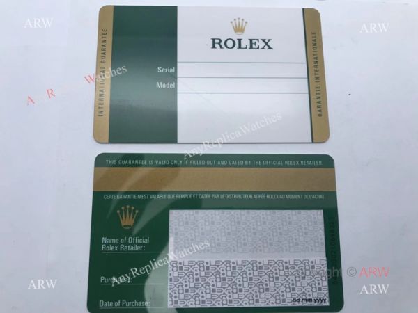 Unfilled brand new Rolex Watch Warranty Card (We can Custom Make the card information for you now. Print both serial numbers if needed. Please leave us a comment about the numbers you would like to put on the card. )