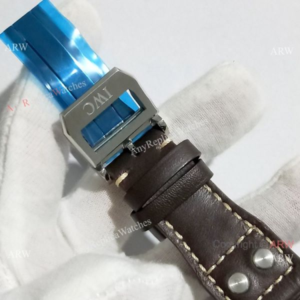 316L Stainless Steel Case Brown Leather Band Blue Face IWC Pilot Watches For Men