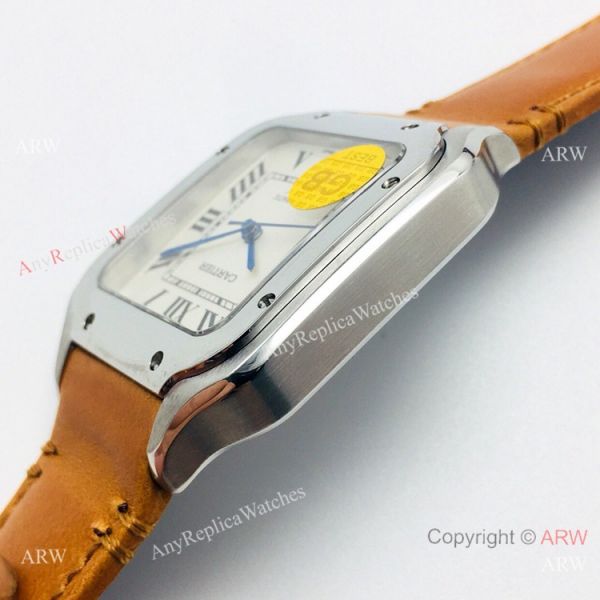 (GB) SWISS Replica Cartier Santos De SS Brown Leather Strap Watch