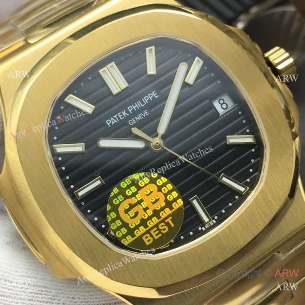 Grade 1A Replica Patek Philippe Nautilus GB Factory Cal.324 Yellow Gold Black Dial Watch