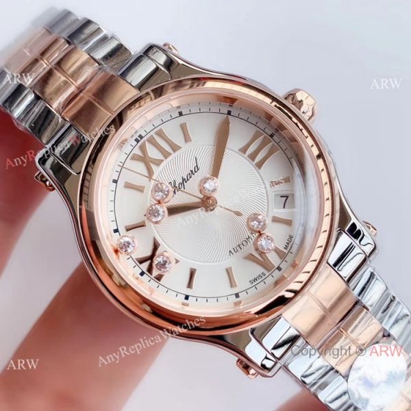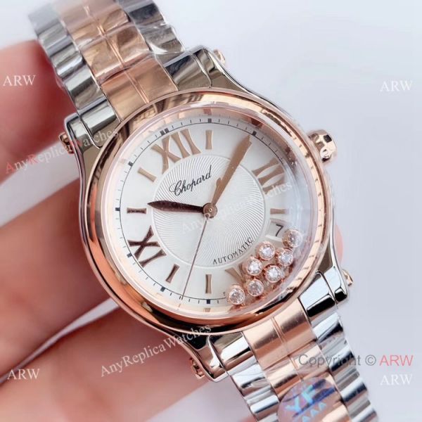 YF Factory Replica Chopard HAPPY SPORT Ladies Watch Two Tone Rose Gold
