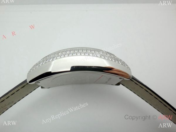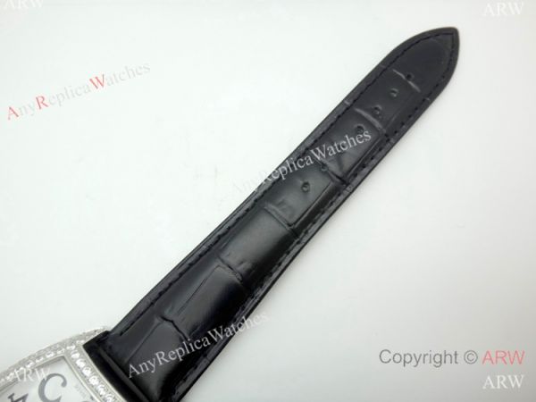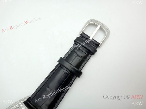 316L Stainless Steel Diamond Watch case Black Leather w/ Tang Buckle