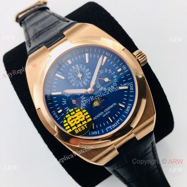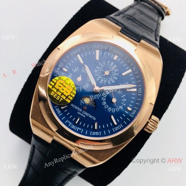 GB Factory Vacheron Constantin Overseas Perpetual Calendar Watch Blue Dial Leather Strap