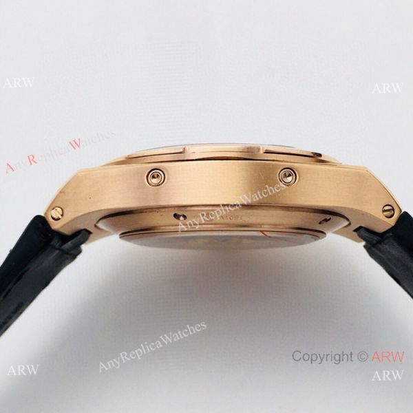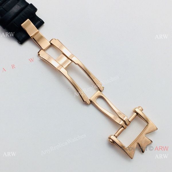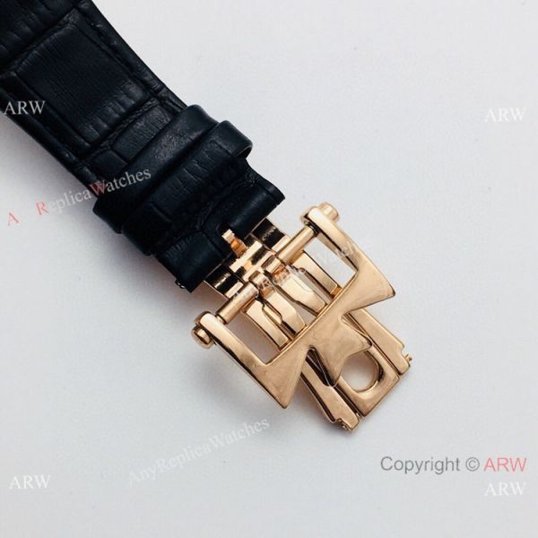 Rose Gold Case Black Leather Band Blue Perpetual Calendar Dial