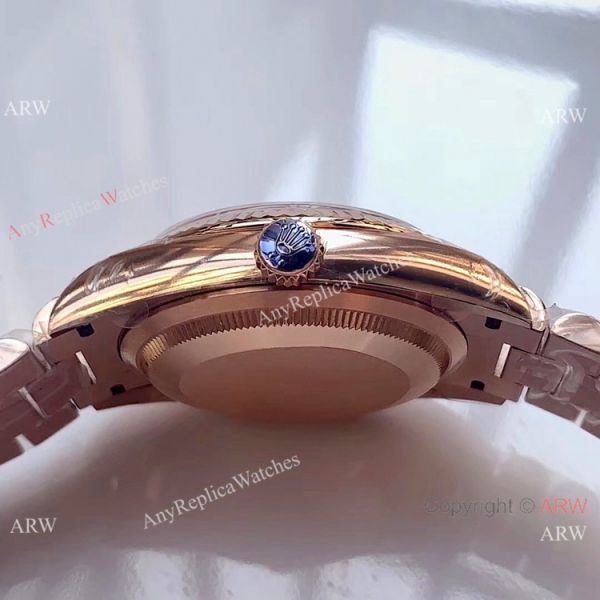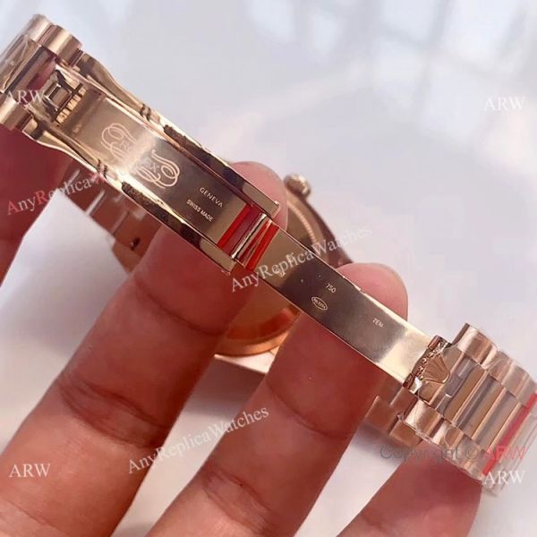 Strap: New Style 316L Rose Gold Presidential Watch Band with Rolex Logo on Buckle (With the same number 128235 as the original watch case between the watch band)