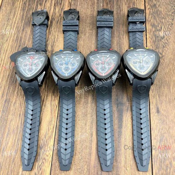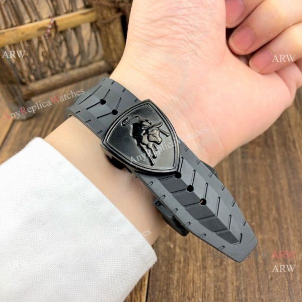 904L Black Steel Watch Case Black Face Black rubber strap Lamborghini Watches Replica