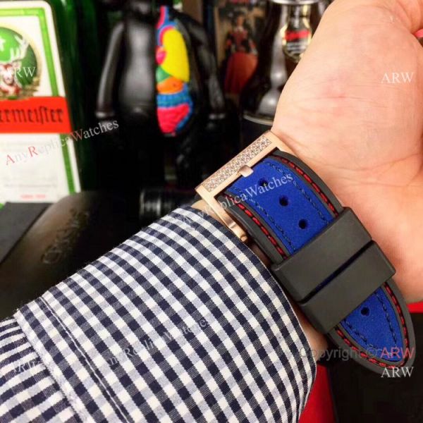 316L Stainless Steel Diamonds Case Gray Gummy Strap Skeleton Face Roger Dubuis Diamond Watches