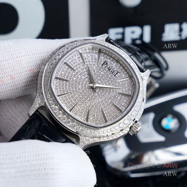 Swiss Grade Replica Piaget Diamond Watch - Piaget Black Tie Diamond Watch 42mm