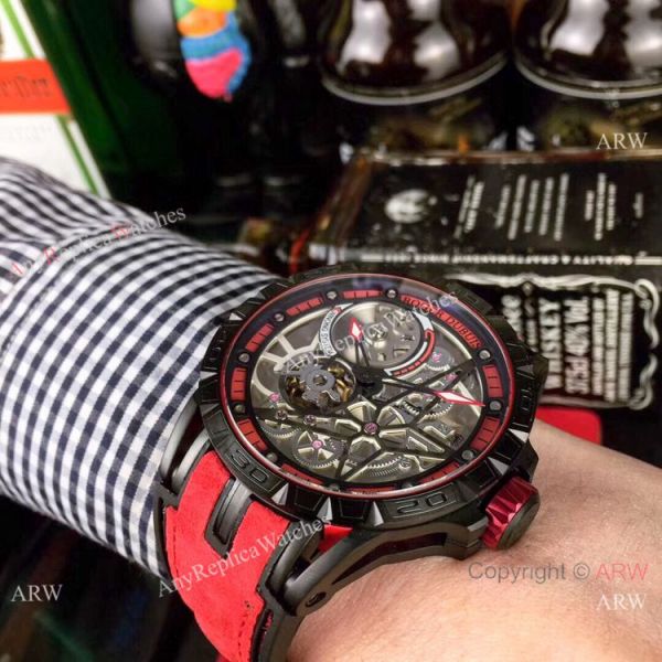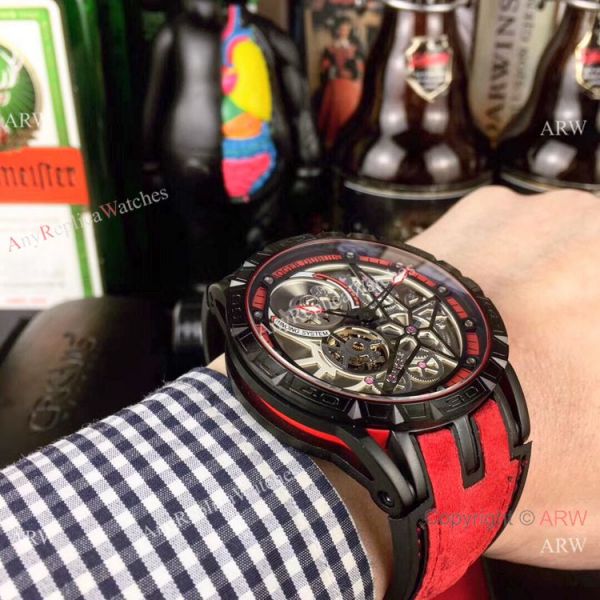 Black PLD Case Red Gummy Strap Skeleton Face with Red Inner Roger Dubuis Excalibur Spider Watch