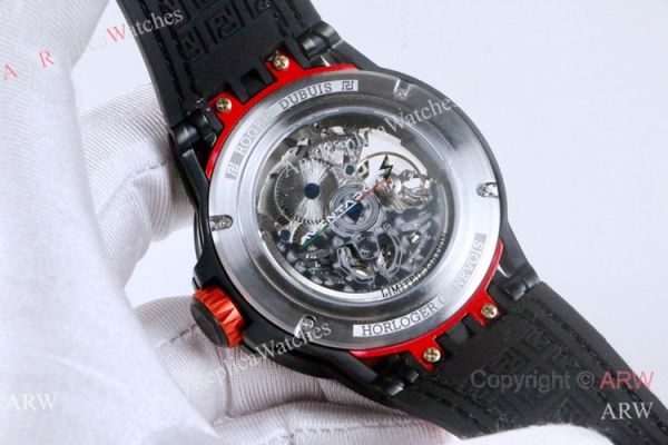 Black Plated Titanium Case Red Gummy Strap Skeleton Face Roger Dubuis Replica replica watch