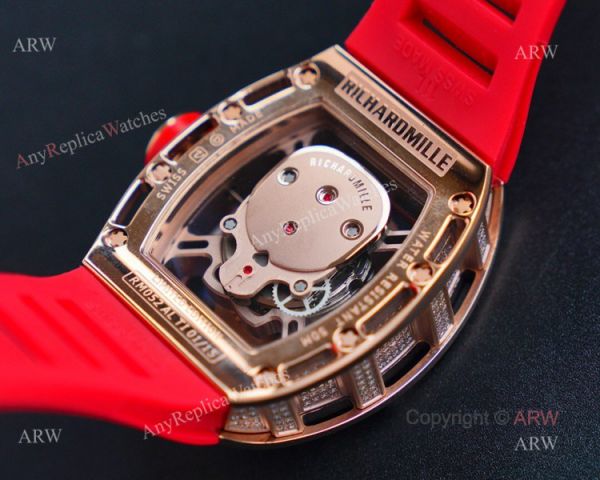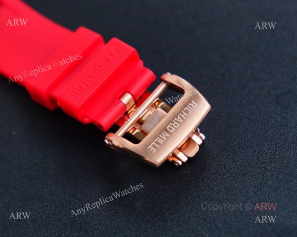 Rose Gold Richard Mille RM 052 Skull Replica Watch With Red Rubber Strap