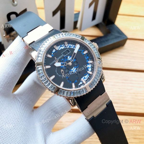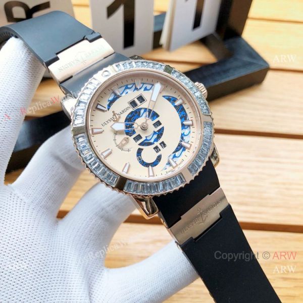 316L Steel Case White Face Diamond Bezel Rubber Strap Ulysse Nardin Watch