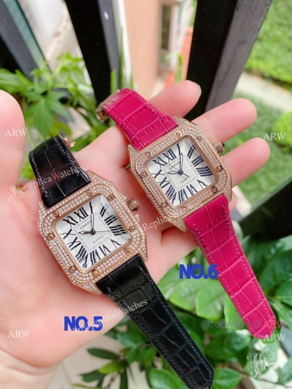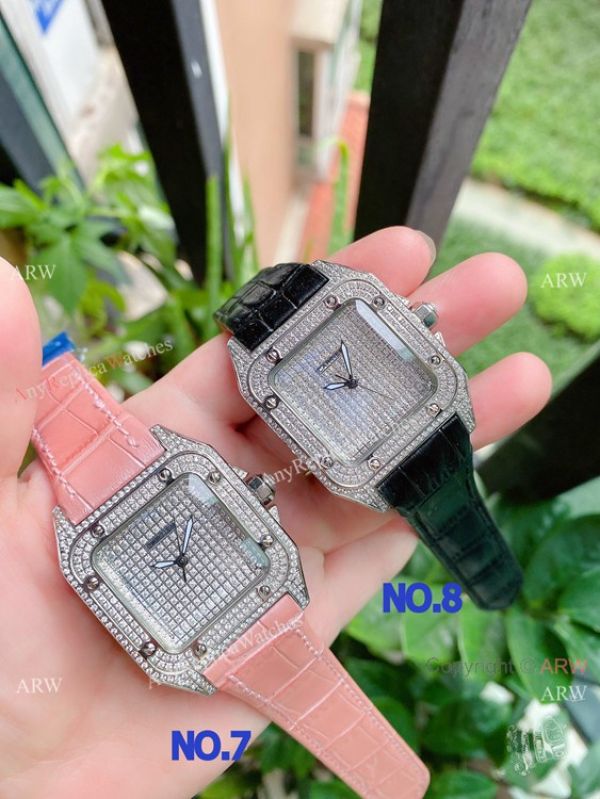 35mm Lady Cartier Santos Iced Out Replica Watches