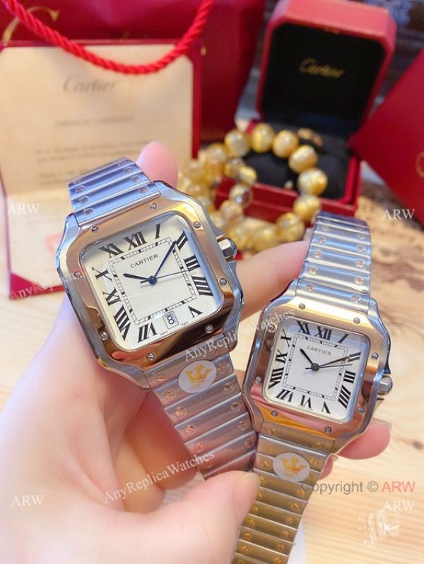 Check the bottom images for more detail of the Replica Cartier Santos de Couple Watch.