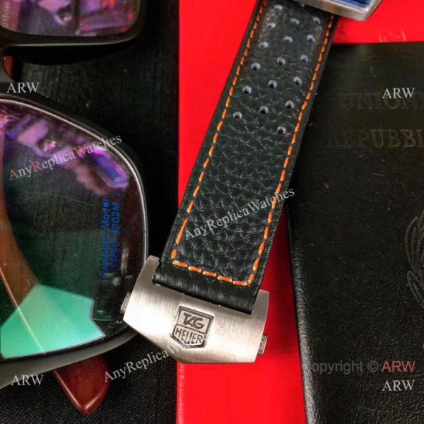 316L Steel Case Black Leather Bracelet Blue Dial Replica Monaco Watch
