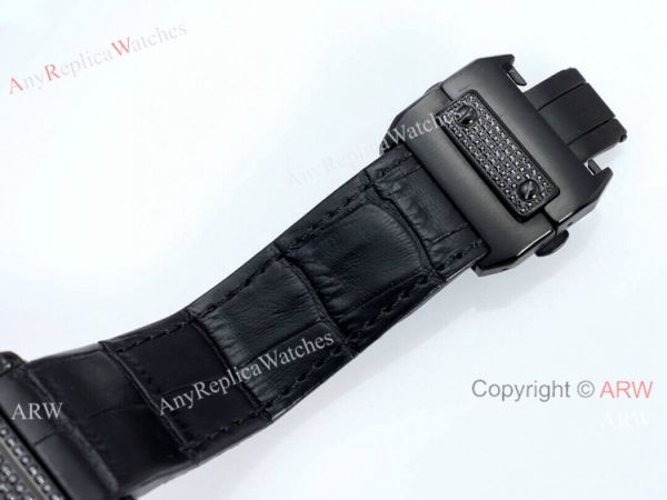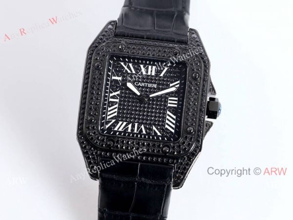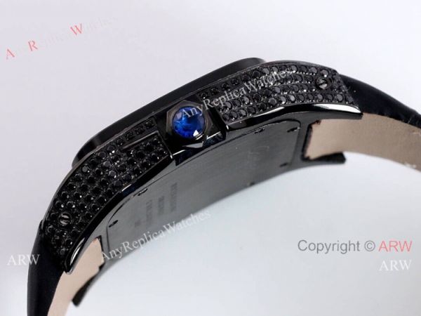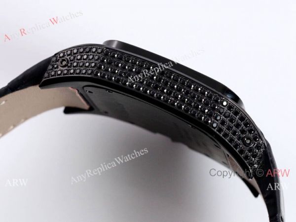 Black Diamond Case Black Leather Bracelet Full Diamond Dial Cartier Watch