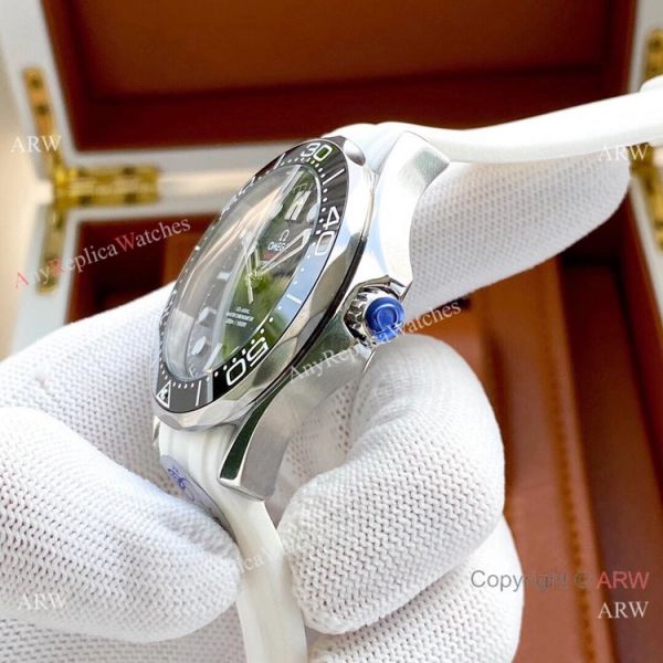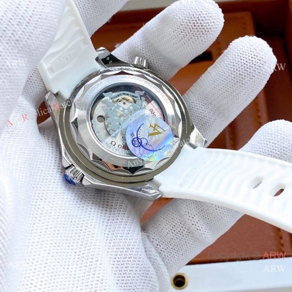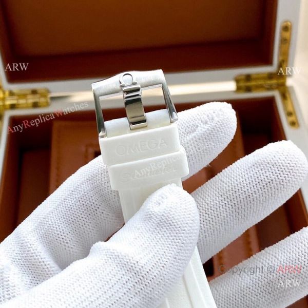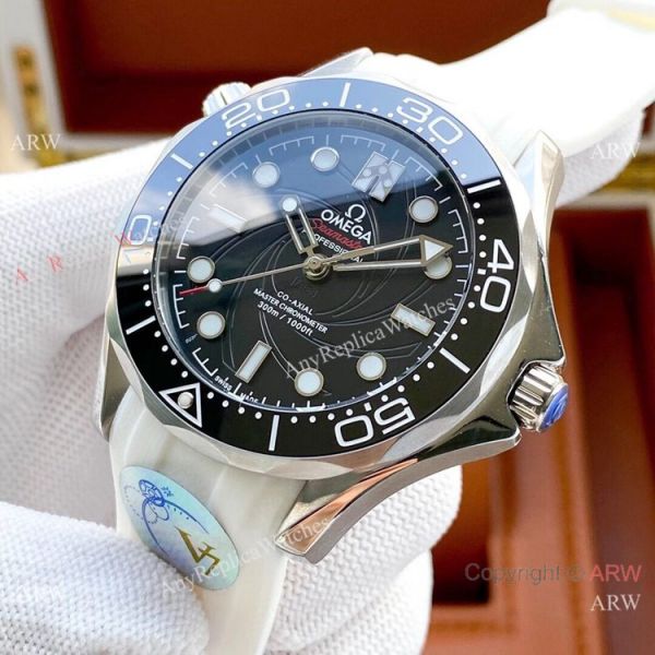 316L Steel Case White Rubber Bracelet Black Dial and Black Ceramic Bezel Omega Clone Watch