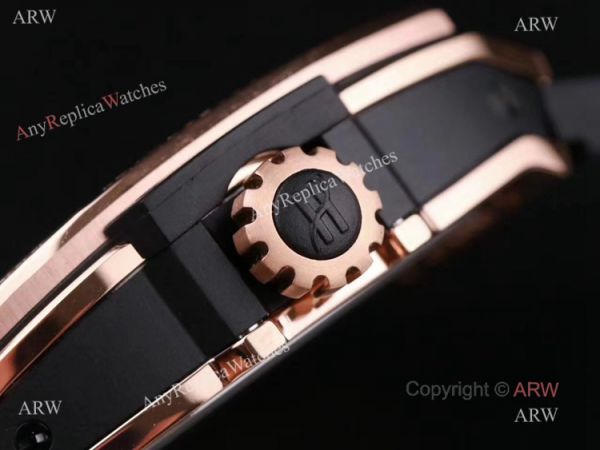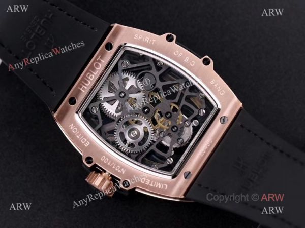 Rose Gold Steel Watch Case - Hublot Skeleton Dial - Hublot Black Leather Strap