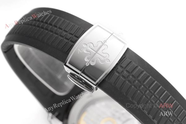 Watch band: Swiss Quality detail finished Patek Philippe Black Rubber Strap with Patek Philippe Stamped Markings on Strap and Clasp