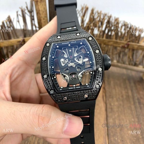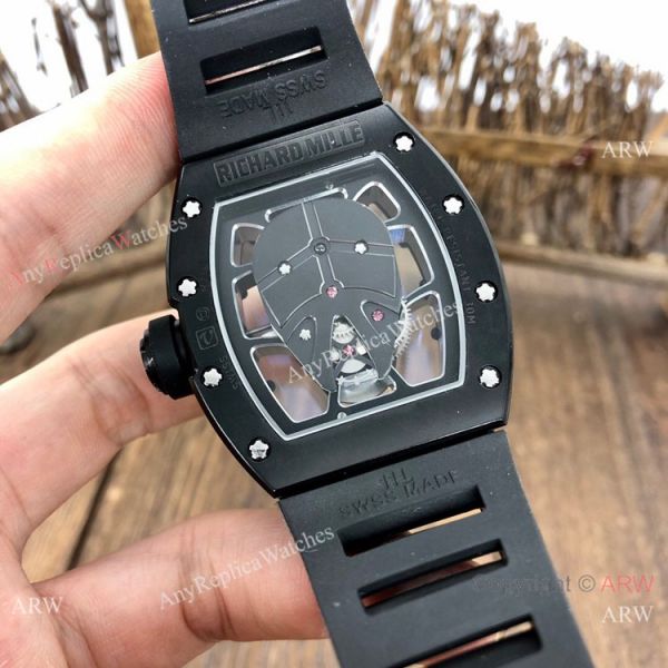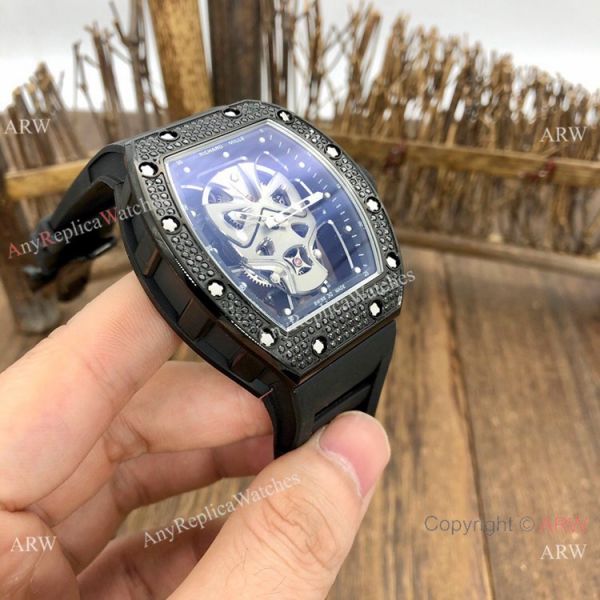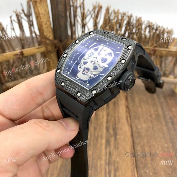316l Black Steel Diamond Case Black Rubber Bracelet Skull Dial Richard Mille Watch