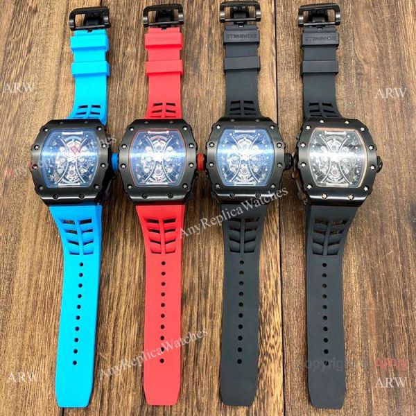 Black Steel Case Black Rubber Bracelet Skeleton Dial Richard Mille Watch