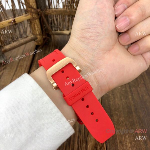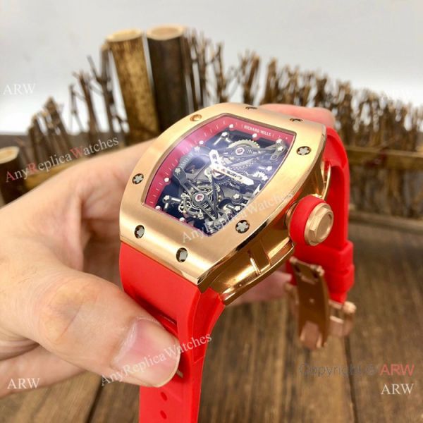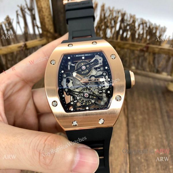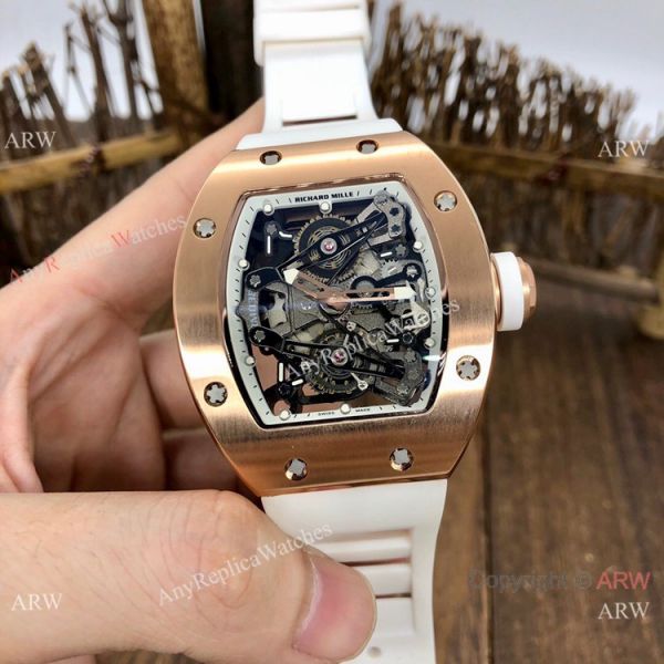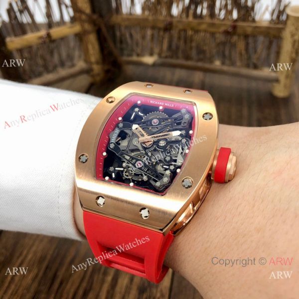 Rose Gold Case Gray Rubber Bracelet Skeleton Dial Richard Mille Watch