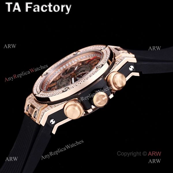 Hublot Diamond Watch Case - Hublot Skeleton Dial with Diamonds Arabic Numerals - Hublot Black Rubber Strap