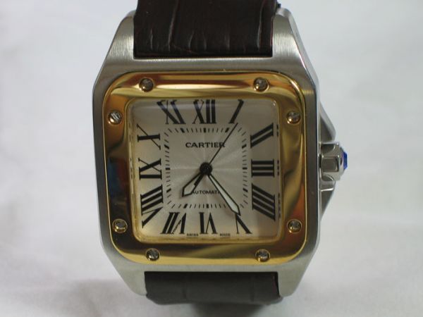 Cartier Santos 100th Anniversary Watch White Dial Gold Bezel