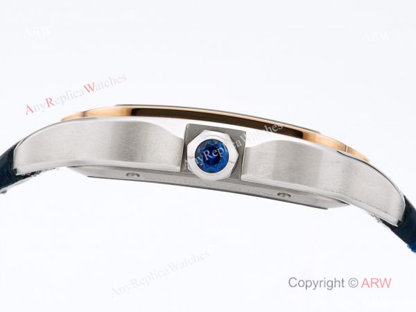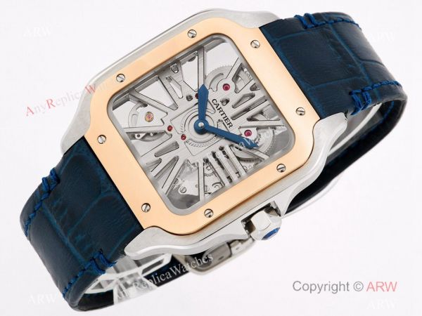 (TWF) Replica Cartier Santos De Skeleton Watch With Half Rose Gold Blue Leather Strap