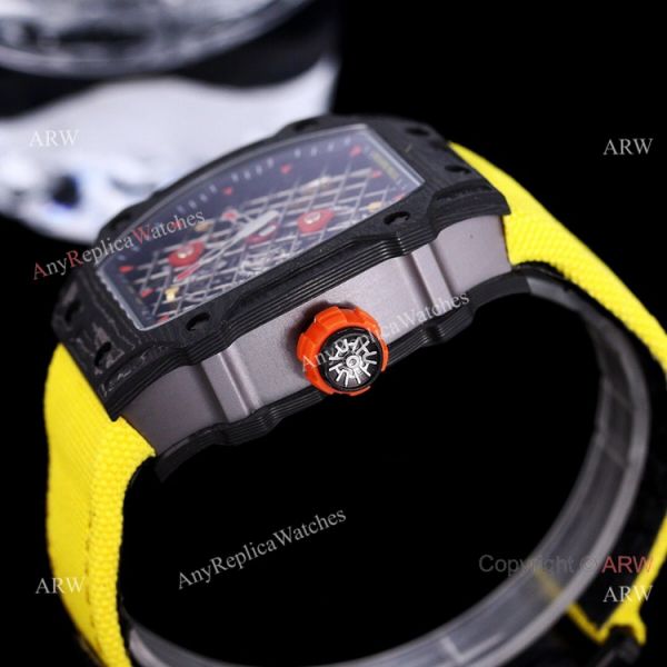 Copy Carbon Fiber Case and Bezel - Yellow Fabric Strap - Richard Mille Richard Mille Watch