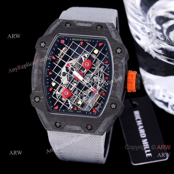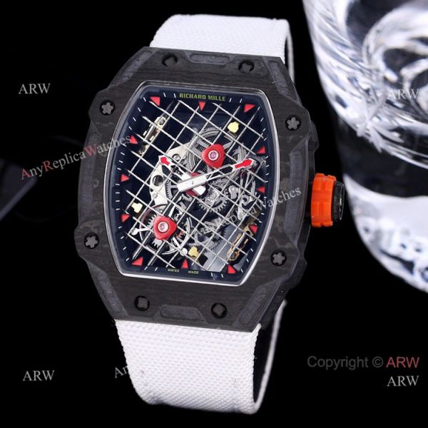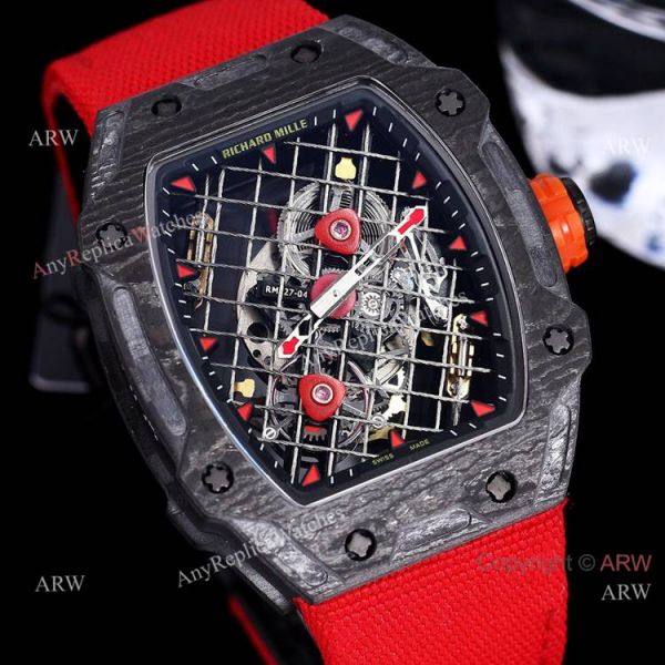 Copy Carbon Fiber Case and Bezel - Red Fabric Strap - Richard Mille Richard Mille Watch