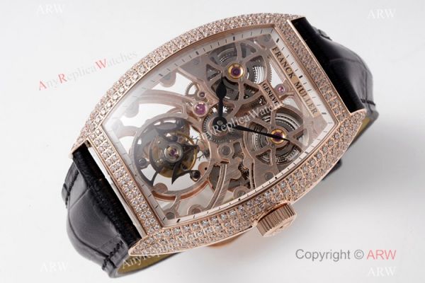 1:1 Super Clone Franck Muller Thunderbolt Tourbillon Iced Out Rose Gold Watch - 72 hour power reserve
