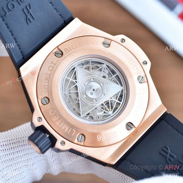 316l Black Steel polished and satin-finished Case Black Gummy Bracelet Skeleton Dial Hublot Watch