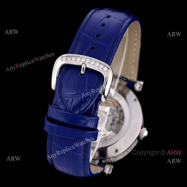Iced Out Franck Muller Double Mystery Blue Leather Strap High Copy Watch