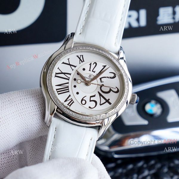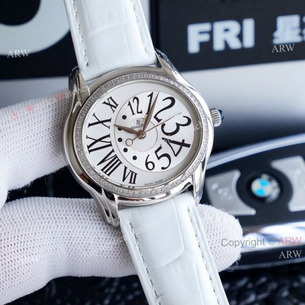 Watch band: AP White leather Bracelet with Audemars Piguet Logo on Buckle