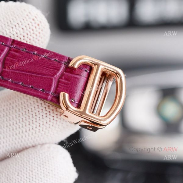 316L Rose Gold Case - Diamond Bezel - Purple month of pearl dial - Purple Leather Strap Cartier Watch