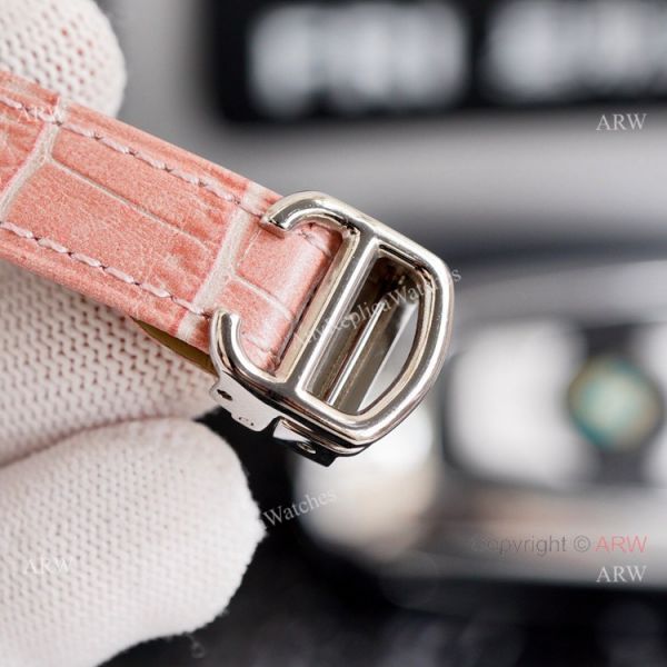 316L Stainless Steel Case - Diamond Bezel - Pink month of pearl dial - Pink Leather Strap Cartier Watch
