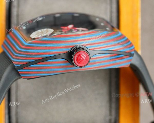 Skeleton dial - black rubber band - Colorful carbon bezel - carbon watch case
